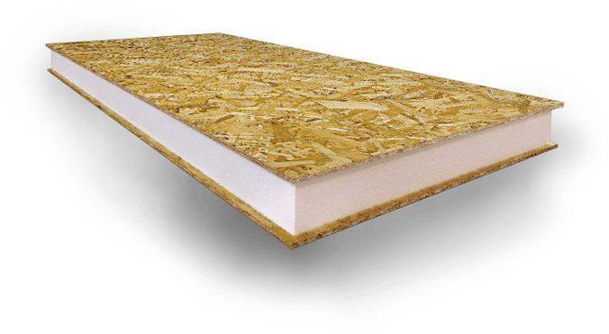 Наиболее распространенный вариант: две ориентированно-стружечные плиты и пенополистирол в качестве утеплителя. Такая панель отличается высоким уровнем прочности, надежностью, простотой использования в строительстве, легкостью, длительным сроком эксплуатации.