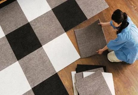 Килимова плитка — новий підлоговий матеріал у вигляді квадратів виконаних в однакових габаритних розмірах (найчастіше 50х50 см). За структурою вона має значні відмінності від ковроліну або килимового настилу, так як в основі використовується кілька жорстких армованих шарів, схожих на пиріг для покрівлі. За рахунок твердої підкладки забезпечується надійний захист від деформацій, що гарантує надійне та щільне прилягання один до одного кутів і країв сусідніх квадратів. У випадку з використанням однотонного малюнка, стики зовсім зливаються. У виробництві основи використовуються різні матеріали, починаючи бітумом і полівінілхлоридом, закінчуючи гумою і стеклохолстом. Хоча укладання килимової плитки (ковролін (плитковий)) — це простий процес.