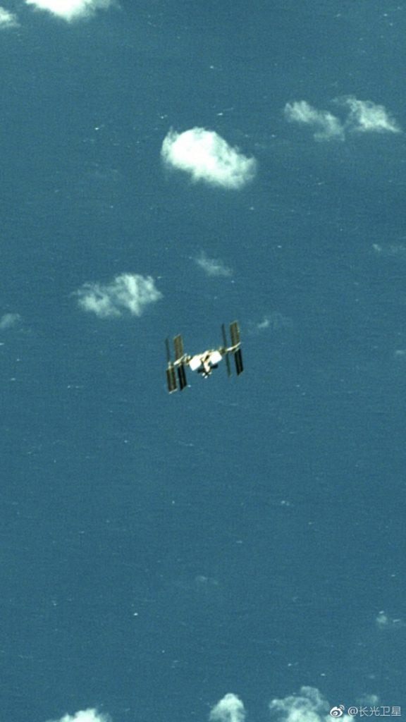 8 сентября в китайском сервисе микроблогов Weibo был опубликован снимок, сделанный одним из спутников дистанционного зондирования Земли Jilin-1. На нем можно увидеть Международную космическую станцию. Сделавший фотографию спутник находится на 656-километровой солнечно-синхронной орбите. Высота орбиты МКС составляет 400 км.