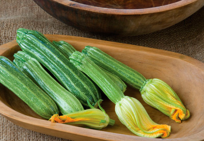 Costata Romanesco: вкусные итальянские кабачки с ореховым вкусом; ребристый, серо-зеленый с бледно-зелеными пятнами; 52 дня до сбора урожая.