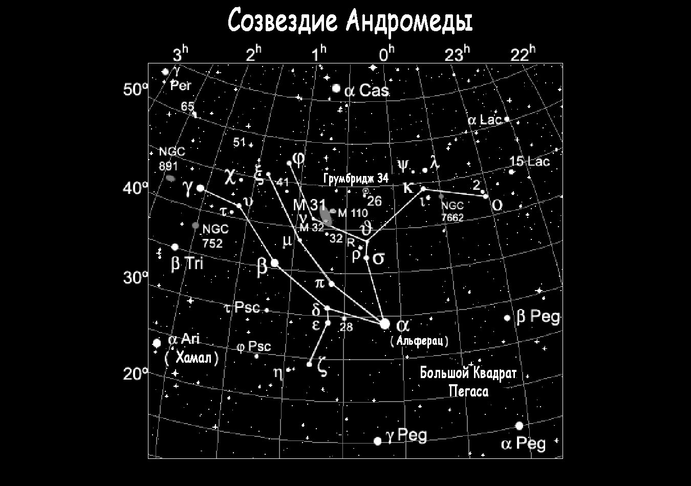 Андромеда – созвездие, которое можно увидеть в северном полушарии нашей планеты. Имеет в своем арсенале три звезды со второй звездной величиной. Созвездие имеет характерный рисунок, который создают звезды входящие в него. Тянется цепочка этих светил с северо–востока в сторону юго-запада.