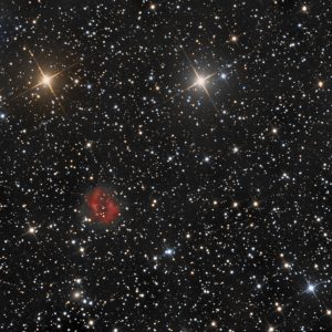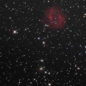 На этой фотографии, полученной при помощи установленного на телескопе VLT спектрографа FORS, запечатлено красноватое облако газа, известное под названием Abell 24. Оно расположено в созвездии Малого Пса и представляет собой планетарную туманность. Но слово «планетарная» не должно вводить в заблуждение. Такие туманности не имеют никакого отношения к планетам — это название было придумано еще в конце XVIII века, когда истинная природа подобных объектов оставалась неизвестной.