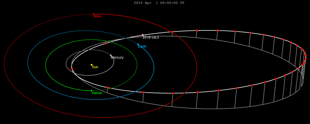 15 апреля астероид, получивший обозначение 2018 GE3, прошел на расстоянии 192 тыс. км от нашей планеты. Это почти в два раза меньше, чем среднее расстояние между ней и Луной. Согласно расчетам астрономов, это самое тесное сближение 2018 GE3 с Землей как минимум за последние 80 лет.