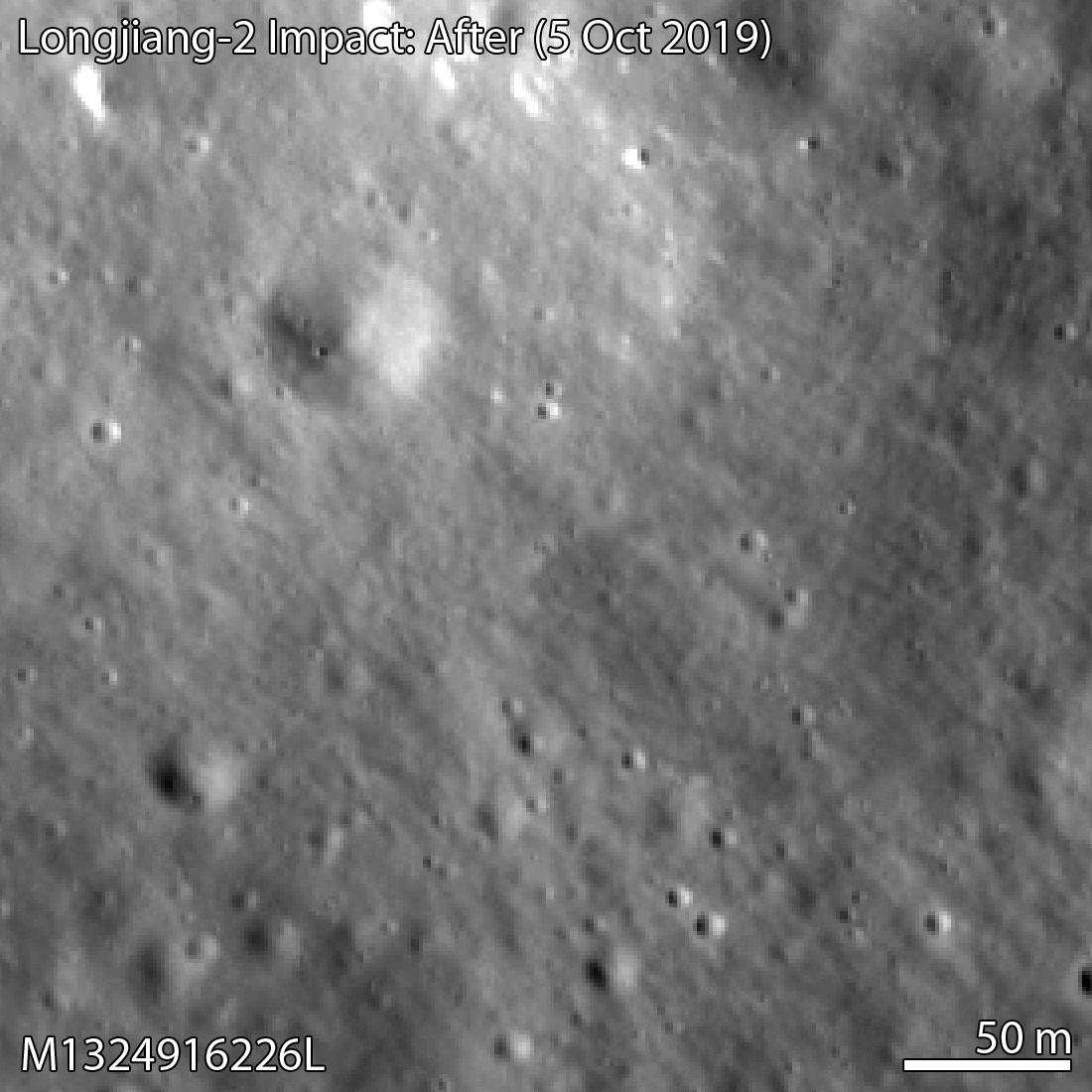 После сравнения полученных изображений со старыми снимками, исследователи обнаружили новый ударный кратер. Он находится на расстоянии всего 328 м от расчетного места падения «Лунцзян-2».. Кратер имеет размеры 4 на 5 м и вытянут с юго-запада на северо-восток. Исходя из его размеров, ориентации и места нахождения, ученые практически не сомневаются, что он образовался в результате падения китайского аппарата.