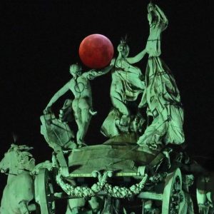 В ночь с 20 на 21 января многие жители Европы, Африки, а также Северной и Южной Америки смогли полюбоваться красивым небесным явлением — полным лунным затмением. Особенностью данного события было то, что оно произошло во время так называемого «суперлуния»: в момент затмения наш естественный спутник находился практически на минимально возможном расстоянии от Земли, из-за чего видимый диаметр его диска был примерно на 8% больше среднего значения. Вот некоторые из лучший фотографий «кровавой Луны», сделанные в разных уголках нашей планеты.