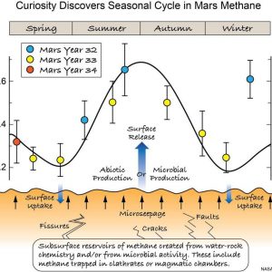 15 июня 2013 г. находящийся в кратере Гейл марсоход Curiosity зарегистрировал рост концентрации метана в марсианской атмосфере. Его содержание составило 5,78 миллиардных долей на единицу объема. Хоть это и совсем немного по земным меркам, открытие вызвало значительный интерес у ученых. Дело в том, что метан достаточно быстро распадается под действием ультрафиолетового излучения Солнца. Поэтому на Марсе должен существо