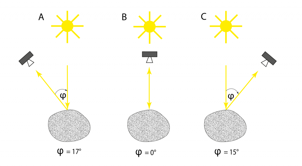 Стоит отметить, что легшие в основу анимации снимки Mars Express сделал под несколькими разными углами. Исходный фазовый угол (угол между Солнцем, Фобосом и зондом) составлял 17°, затем аппарат сократил его почти до нуля, после чего вновь начал отклоняться (уже в противоположную сторону) до достижения фазы почти в 15°.