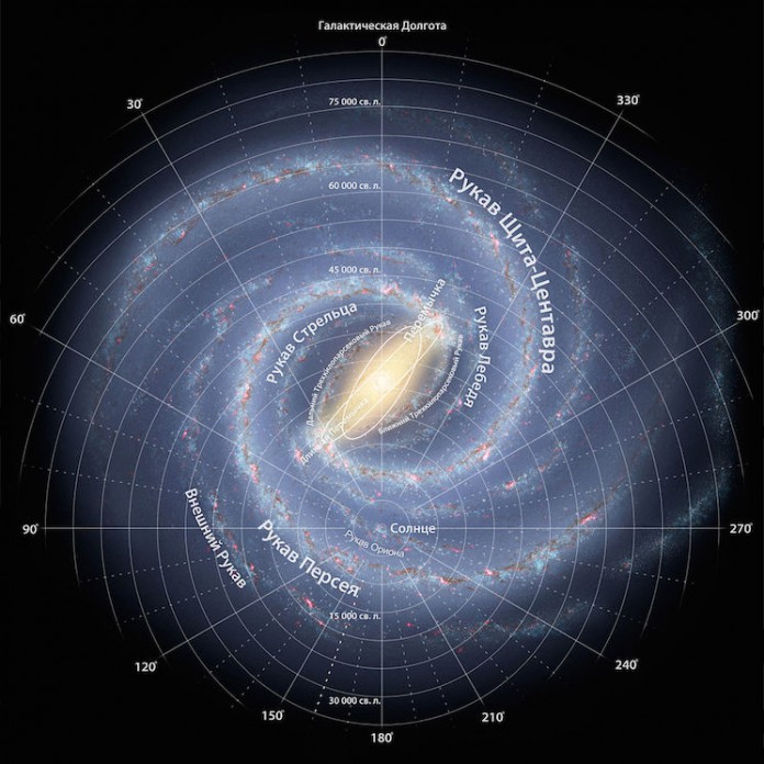 Согласно последним научным оценкам, расстояние от Солнца до галактического центра составляет 26 000 ± 1 400 световых лет, в то время как согласно предварительным оценкам наша звезда должна находиться на расстоянии около 35 000 световых лет от перемычки
