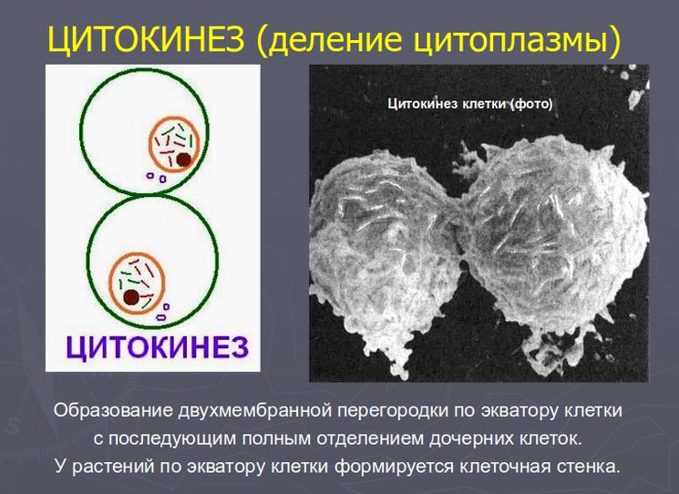 Параллельно с образованием новых ядер идёт процесс разделения цитоплазмы — цитокинез.