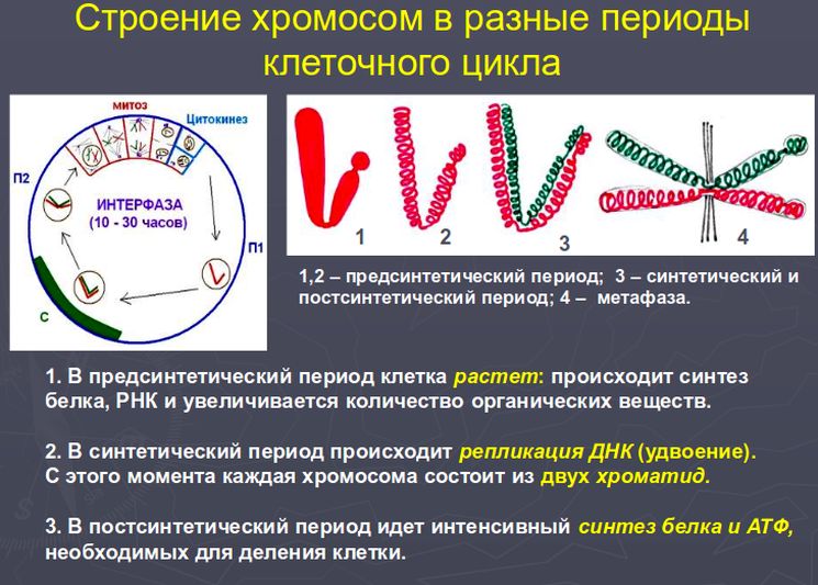 Хромосомы и молекулы ДНК присутствуют в живой клетке в различных количествах. Число их зависит от фазы клеточного цикла — периода между делениями клетки.
