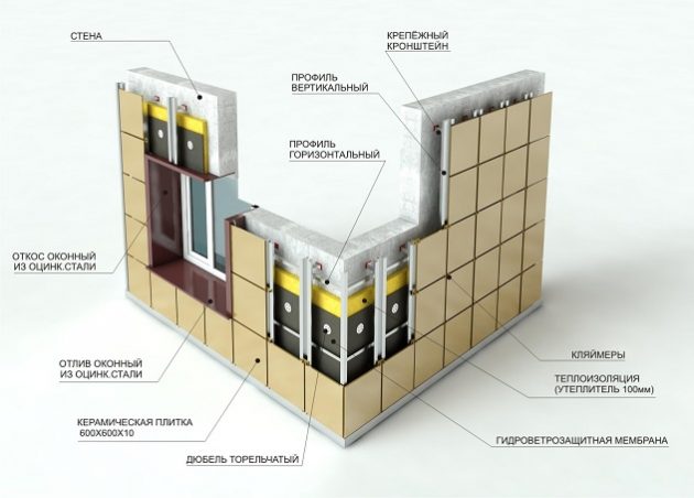 Вентилируемый фасад выполняет сразу несколько необходимых функций: