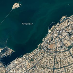 Город Эль-Кувейт и залив Кувейт из космоса. Источник: NASA Earth Observatory images by Lauren Dauphin, using Landsat data from the U.S. Geological Survey
