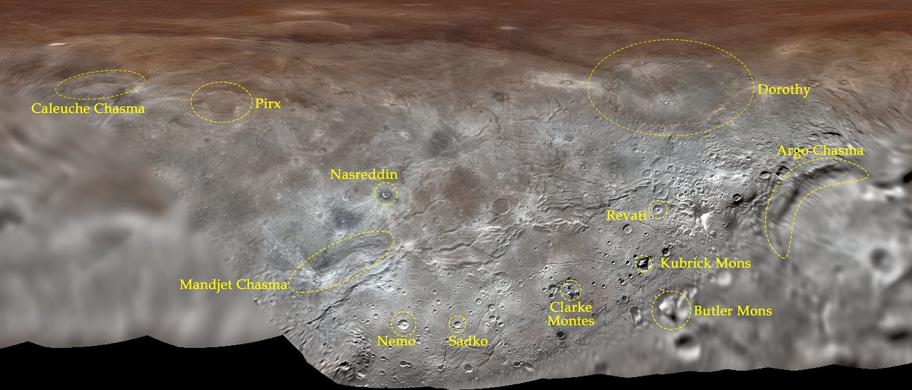 На карте Харона официально появились гора Кубрика и кратер Пиркса