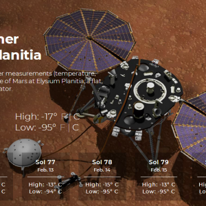 19 февраля NASA приступила к публикации ежедневных метеотчетов с Марса. Они составляются по результатам измерений, проводимых посадочным аппаратом InSight. Отчеты содержат данные о максимальной и минимальной зафиксированной температуре, значении атмосферного давления и скорости ветра.