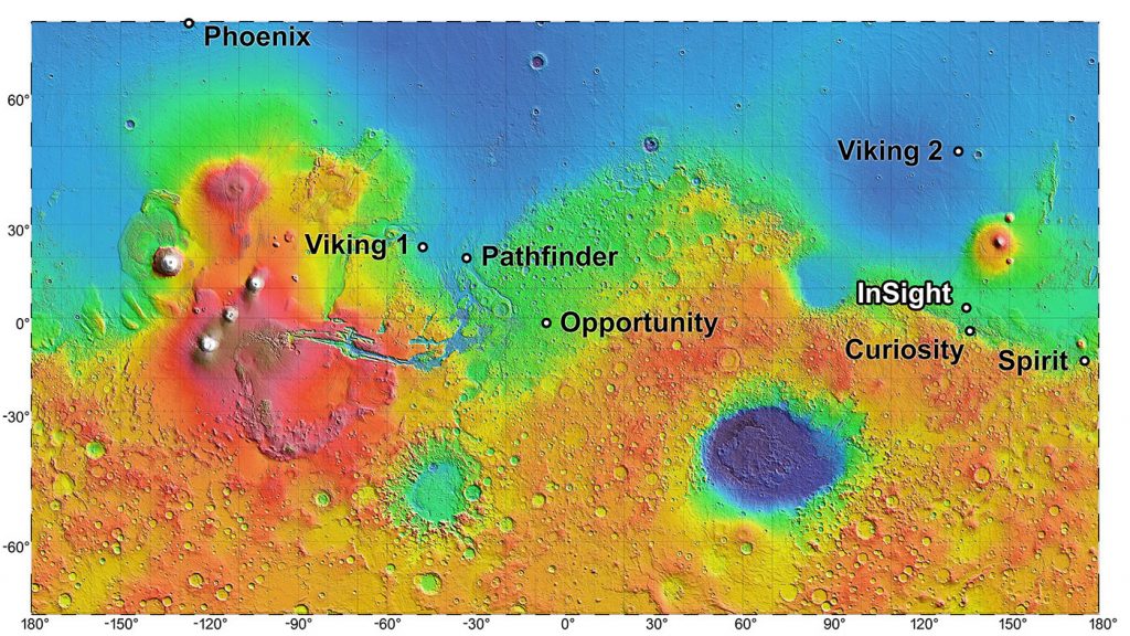 Во-вторых, место посадки имеет относительно небольшую высоту. Давление марсианской атмосферы на этом участке достаточно, чтобы парашют смог эффективно погасить большую часть посадочной скорости InSight. И в-третьих — выбранный участок представляет собой гладкую равнину, покрытую застывшей лавой. На нем практически нет элементов сложного рельефа, способных осложнить спуск аппарата.