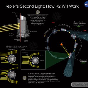 Диаграмма, объясняющая принцип работы расширенной миссии телескопа Kepler. Источник: NASA/Ames/W. Stenzel