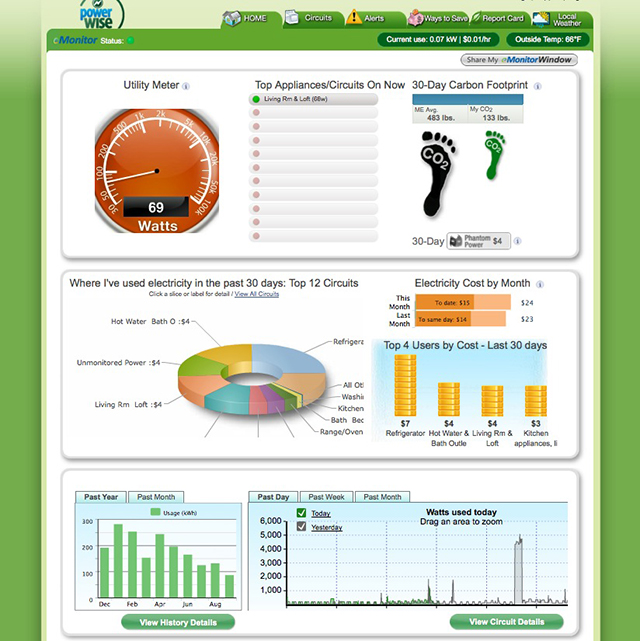 Студенты из колледжа Миддлберри установили в свой дом систему eMonitor, с помощью которой можно следить за потреблением энергии в сети и определить пять устройств, потребляющих энергию больше всего. Данный подход позволит максимально близко подойти к пониманию экономии энергии.