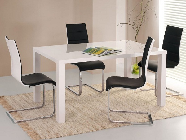 Форма стола имеет не малое значение, чем его размер. В определенном смысле, форма – это отображение мировоззрения владельцев. Кроме того, ключевую роль опять играет само помещение. Если кухонный интерьерный дизайн сделан с большим количеством сглаженных форм – необходимо посмотреть на белые обеденные столы круглой или округлой формы. Если например у Вас комната в стиле классицизма со многим числом углов – стол так же обязан быть квадратным или прямоугольным. Если у вас дома есть детки – все же нужно посмотреть на столы без углов, ввиду их малой травмоопасности.