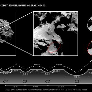 В период с 2014 по 2016 г. европейский зонд Rosetta исследовал с близкого расстояния комету Чурюмова-Герасименко (67P/Churyumov-Gerasimenko). За это время «хвостатая гостья» прошла перигелий своей орбиты. Сближение с Солнцем привело не просто к увеличению активности кометы, но и к активной эрозии ее поверхности.