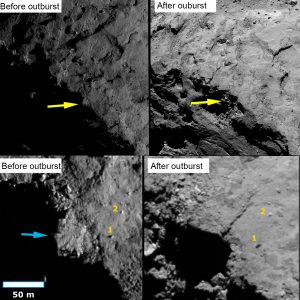В ходе анализа архива снимков, полученных в ходе миссии Rosetta, ученые обнаружили целый ряд произошедших и