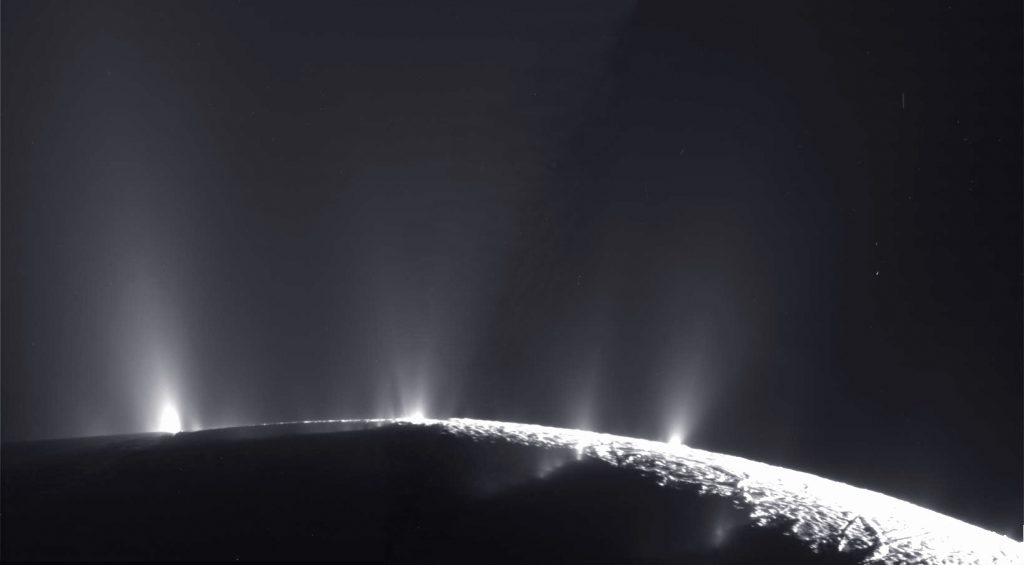 Сатурнианский спутник Энцелад по праву считается одним из самых перспективных мест для поиска жизни в Солнечной системе. У его южного полюса сосредоточен целый ряд гейзеров, активно выбрасывающих в космос воду из его подповерхностного океана. Анализ вещества из водяных шлейфов Энцелада показал, что она содержит соли, углекислый газ, метан, аммиак, водород и метанол. Все это свидетельствует о том, что на дне океана проходят активные гид