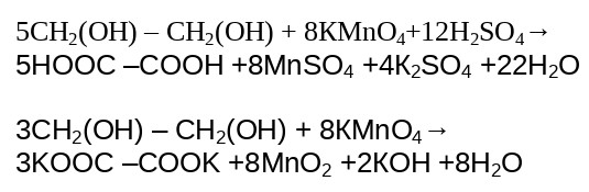 При смене нейтральной среды на кислотную реакция окисления протекает до образования углекислого газа или щавелевой кислоты.