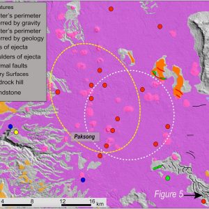Падения крупных небесных тел приводят не только к возникновению ударных кратеров, но и к формированию ряда специфических пород. Одними из них являются тектиты — оплавленные кусочки природного стекла, характеризующиеся однородным строением, а также крайне низким содержанием воды и других летучих веществ. Тектиты единого происхождения распределены не случайно: они образуют поле разброса, размер и форма которого зависят от траектории и массы упавшего объекта.