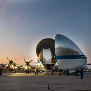 Самолет Super Guppy перевозящий космический корабль Orion. Источник: NASA/Marvin Smith
