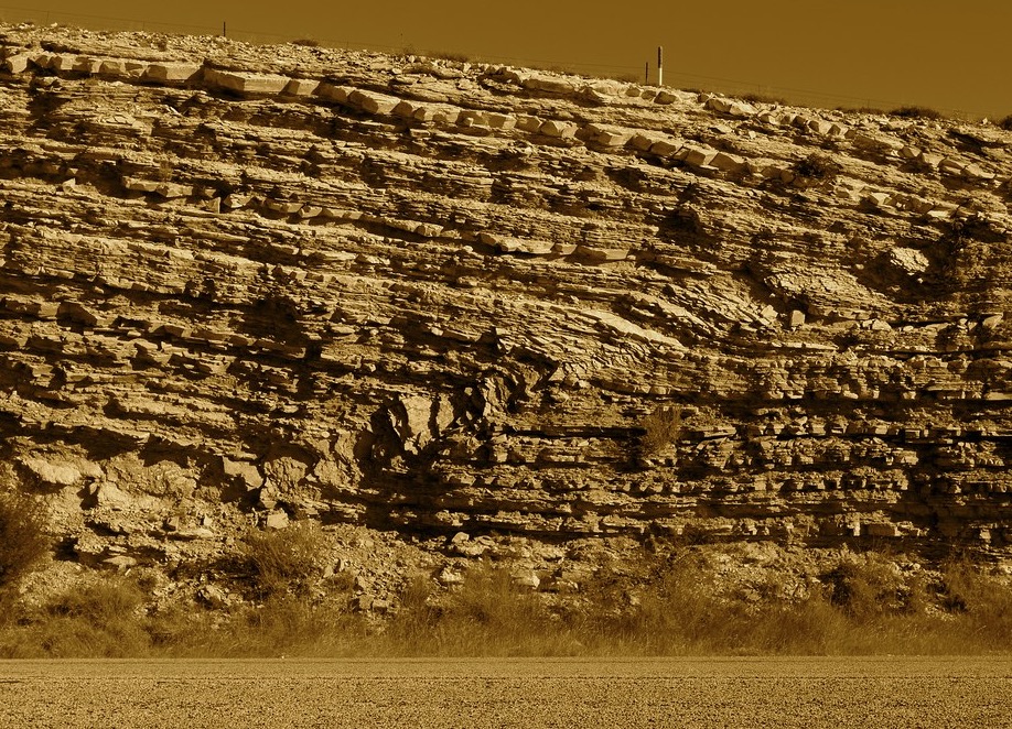 Это разбитые на куски слои мергеля, переходной породы от известняка и доломита к глине, были отложены глубоко в море миллионы лет назад.