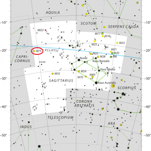 Сейчас мы знаем, что M75 представляет собой шаровое скопление — плотную группу звезд, обращающуюся вокруг галактического центра, подобно спутнику. Наш Млечный Путь содержит несколько сотен подобных объектов. Скопление M75 интересно по нескольким причинам. Во-первых, оно находится достаточно далеко — на расстоянии 67 тыс. световых лет от Солнечной системы, по противоположную сторону от центра нашей Галактики. Во-вторых, оно является одним из наиболее плотных известных нам шаровых скоплений. Его звездное население оценивается в 400 тыс. светил при радиусе в 67 световых лет. Большинство из этих звезд расположено в центре M75, что делает его достаточно «переполненным».