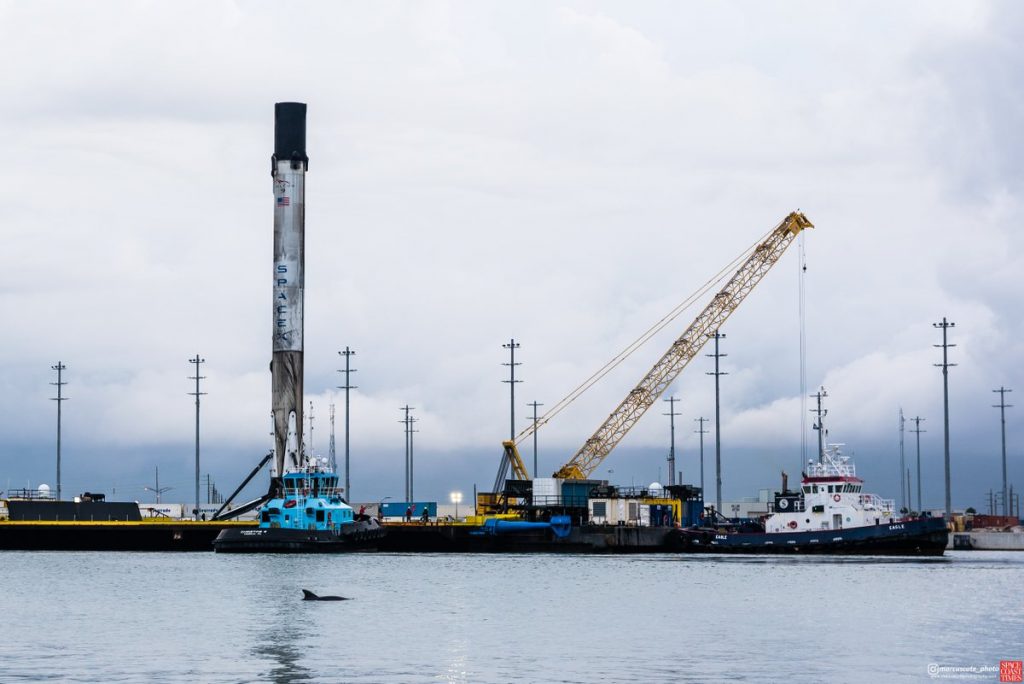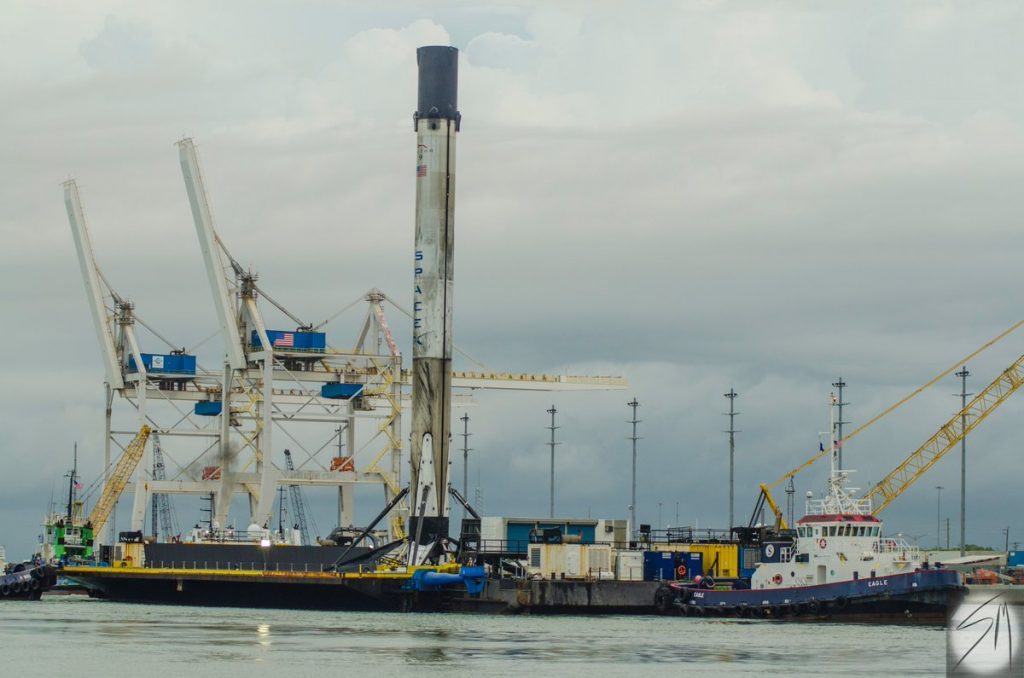 Кроме того, специалисты извлекли из камер баржи изображения, сделанные во время посадки ступени. Вот один из наиболее эффектных снимков.