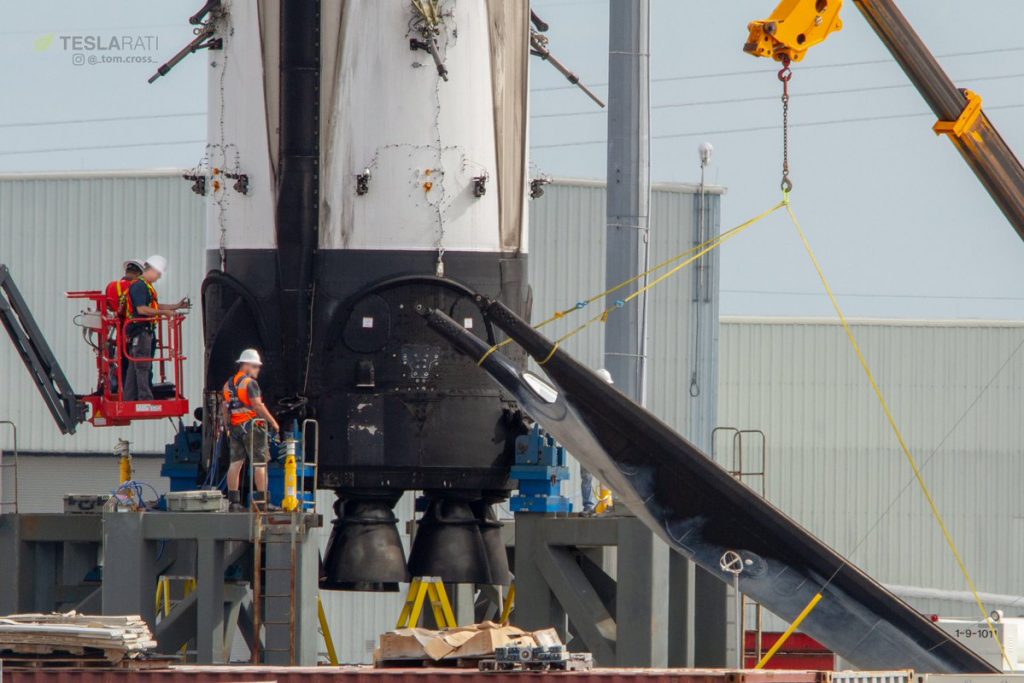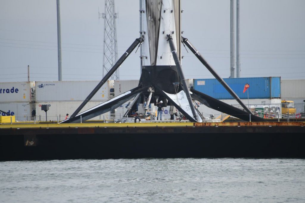 Судя по фотографиям, ступень находится в хорошей форме. Особое внимание можно обратить на состояние новых титановых решетчатых крыльев, пришедших на смену старым алюминиевым.