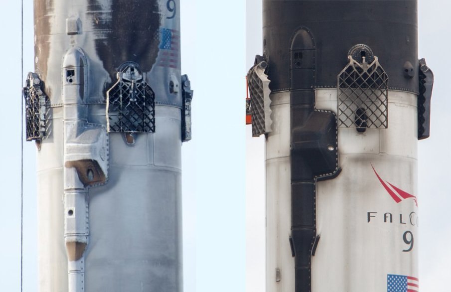 Сравнение состояния крыльев, использовавшихся на первой ступени модификации Block 4 (слева) и Block 5 (справа). Источник: Tom Cross