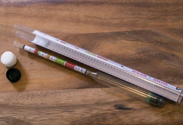 Ареометр — прибор для измерения плотности жидкости. Чем больше плотность жидкости, тем больше выталкивающая сила, и тем выше всплывает корпус прибора.