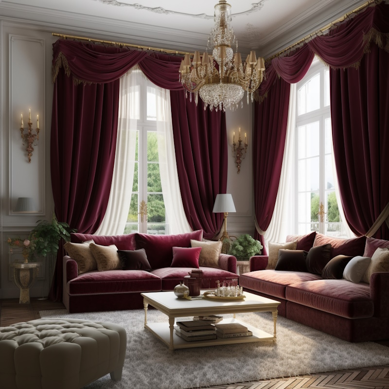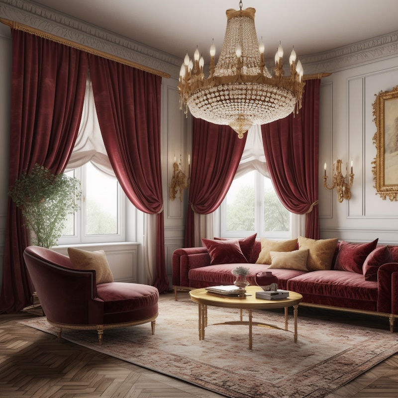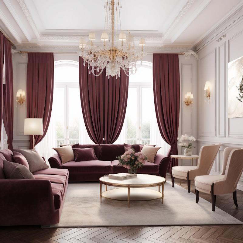 Стиль интерьера: Шторы должны гармонично вписываться в общую концепцию дизайна гостиной. Для классического интерьера подойдут портьеры из плотных, дорогих тканей, таких как бархат или шелк, с ламбрекенами и кистями. Для современного интерьера можно выбрать лаконичные шторы из однотонных тканей, без лишних деталей. Минимализм предполагает использование рулонных или римских штор, а для стиля кантри подойдут шторы из натуральных тканей с цветочным принтом.