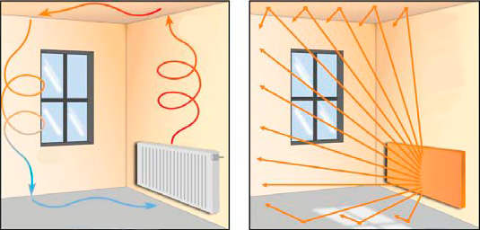 - обогревают противоположные стены и людей, находящихся в зоне действия;