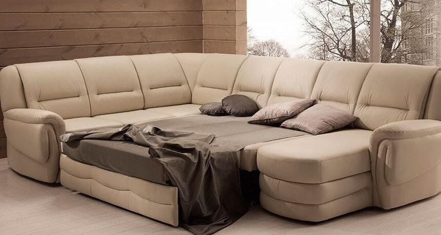 Ночью же конструкция превратится в просторное ложе достаточно габаритных размеров. Так же угловые диваны со спальным местом выгодно устанавливать в гостиной, если к вам часто приезжают гости и спонтанно остаются на ночлег.
