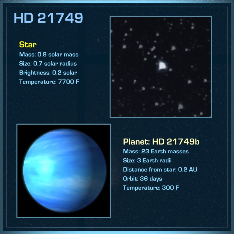 Имеющиеся данные об экзоплланете HD 21749b. Источник: NASA/MIT/TESS