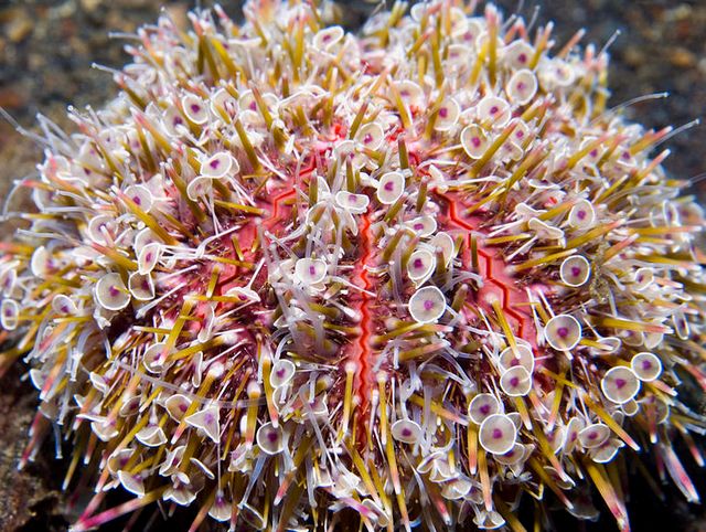 Морской ёж токсопнеустес имеет короткие иглы которые практически не видны за множеством «красивых» цветочков — педициллярий. Однако именно эти педициллярии несут в себе смертельную опасность — их безобидные трёхстворчатые венчики смыкаются наподобие капканов при контакте с жертвой и само-собой в образовавшуюся ранку впрыскивается яд.