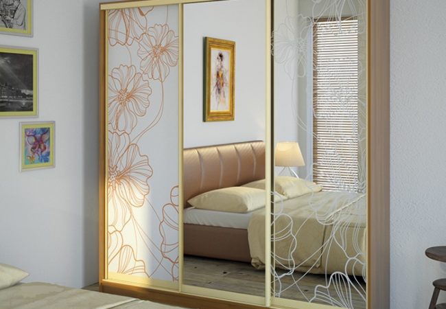 Обязательным элементом шкафа купе для спальной является зеркало от пола до потолка. При этом зеркала могут быть как на всех дверях шкафа, так и на одной или нескольких из них.
