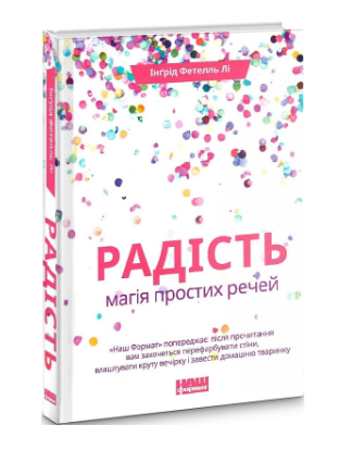 Як оточення, кольори й текстури впливають на наше самопочуття? Чому так важко розкласти все по полицях у голові, коли перебуваєш у некомфортному оточенні? Про це та багато іншого розказує Інґрід Фетелль Лі у своїй чудовій книжці «Радість. Магія простих речей». Ви знайдете тут чимало порад із облаштування оселі та зрозумієте, що радість — то ціла наука, осягнути яку зможе кожен.