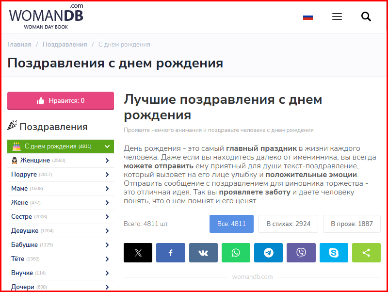 На сайте womandb.com собраны самые красивые поздравления с днем рождения в стихах и прозе для каждого члена семьи и на любой случай жизни на странице — https://womandb.com/ru/pozdravleniya/s-dnem-rozhdeniya