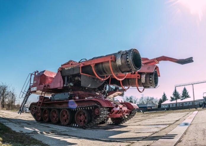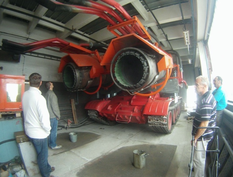Пожарный танк на базе шасси Т-34 с применением газотурбинных двигателей МиГ-21