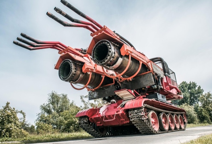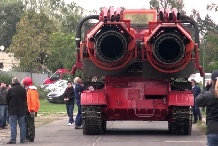 Венгерская компания MB Drilling вышла с предложением применить газоводяной метод тушения на базе шасси танка. Метод был к тому времени не новый и уже вовсю использовался в подразделениях пожарной охраны. Под высоким давлением, созданной раскрученной турбиной, в очаг пожара подавалась распыленная вода с воздухом.