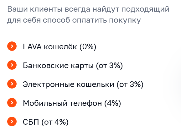 5. Lava-кошелёк. Тариф позволяет совершать оплату по электронному Lava-кошельку. Комиссия в этом случае составляет 0%.