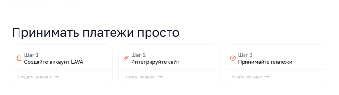 Чтобы подключиться к сервису Lava, чтобы быстро принимать платежи с сайта и с соцсетей, необходимо на сайте создать свой электронный кошелёк Lava, но перед этим нужно пройти на сайте регистрацию, используя свой номер телефона. После создания электронного кошелька нужно пройти идентификацию для защиты личных данных и денежных средств, хранящихся на счёте электронного кошелька. Процесс идентификации занимает 1 день.