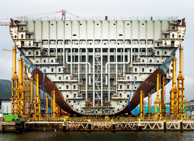 Огромный океанский корабль в разрезе