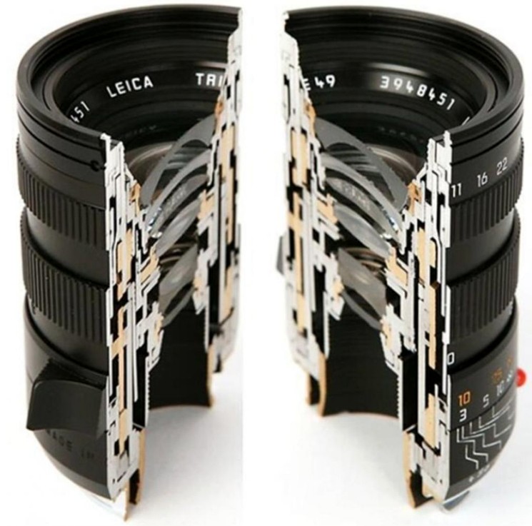 Продольный разрез объектива Leica (можно лицезреть внушительное число линз)