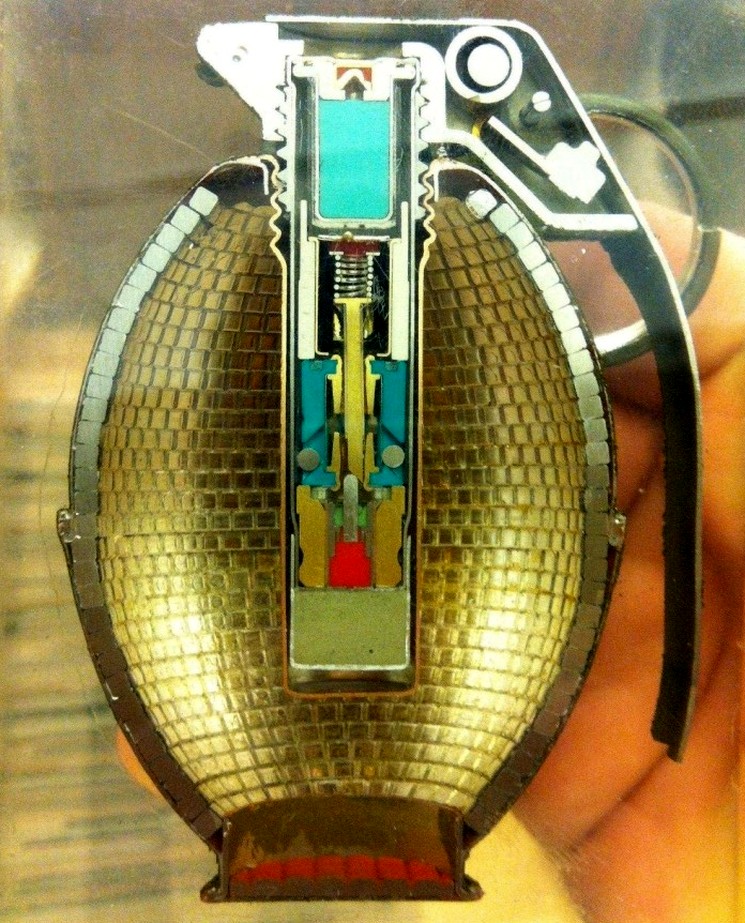 Ручная граната в разрезе — хорошо видны готовые убойные элементы (осколки).