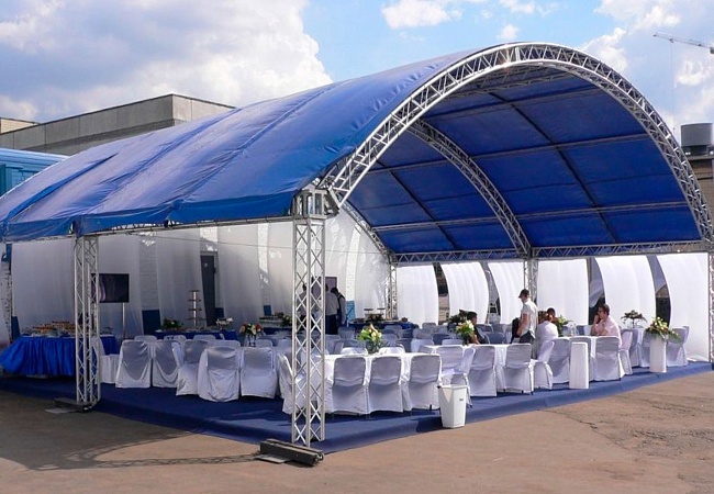 Отсутствие внешней поддержки добавляет универсальности палатки. Это позволяет установить его практически в любом пространстве. Чистые линии строительного шатра, не загроможденные видимыми канатами и опорными столбами, визуально привлекательны и удобны.